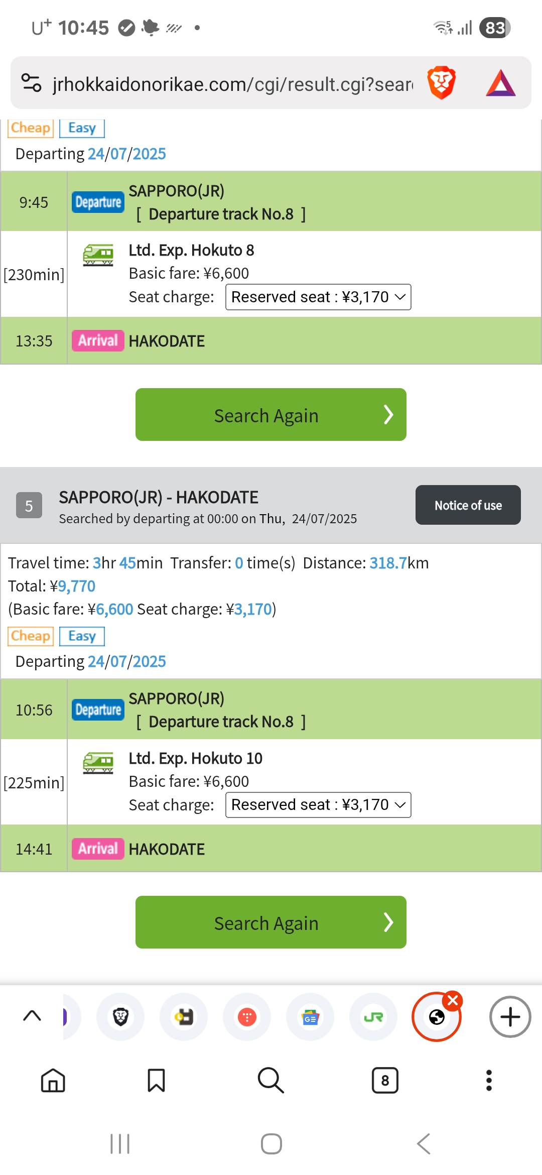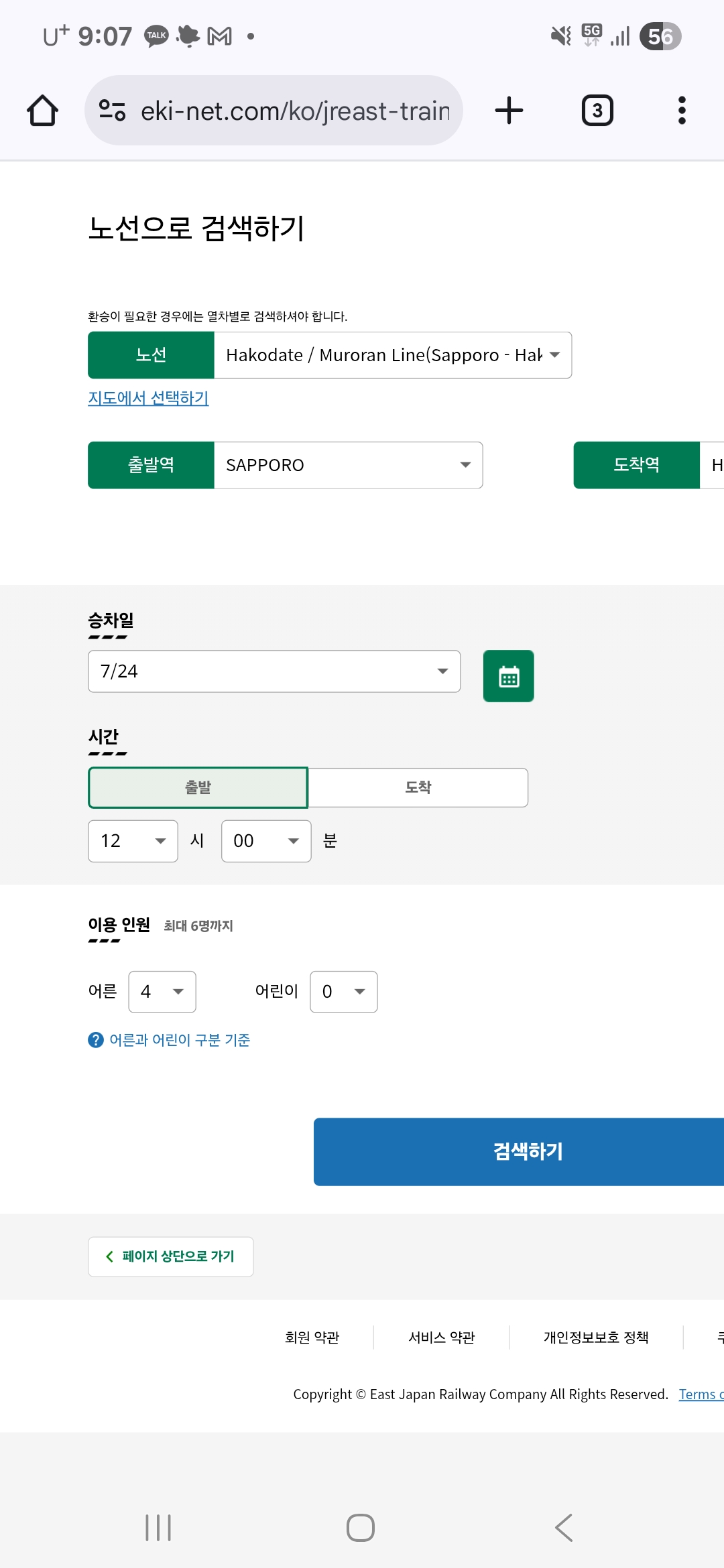 이제 밥도 먹고 하코다테행 JR타고 낮잠 잘 일만 남았다. 첫날의 지정석 혼동을 피하고자 티켓구매창구로 가서 카드로 구매했다. 혹시라도 못 알아들을까봐 아래 같이 웹사이트에서 검색한 화면 보여드리고 구매 완료!